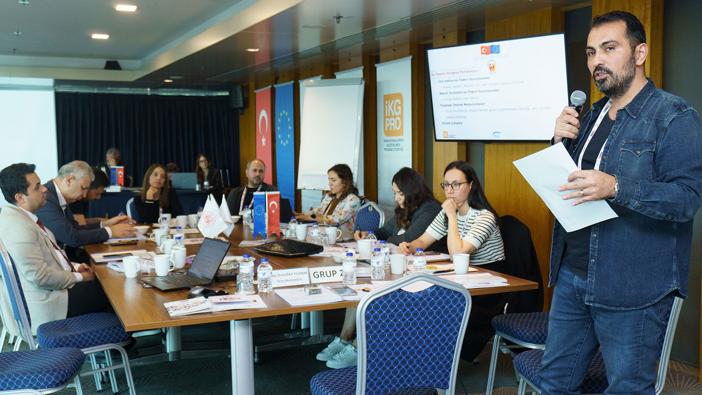 İkinci oturumda, “Ebeveyn İş-Yaşam Dengesi” hakkında grup çalışmalarına devam edildi. Kadınların iş yaşamında karşılaştığı üç temel risk ve iş-yaşam dengesi politikalarının rolü hakkında görüşler belirtilmiştir. Ardından kadınların iş güvencesi ve mesleki gelişimini güçlendirmede iş-yaşam dengesi araçları ve bakım sigortası hakkındaki görüşleri alınmıştır.